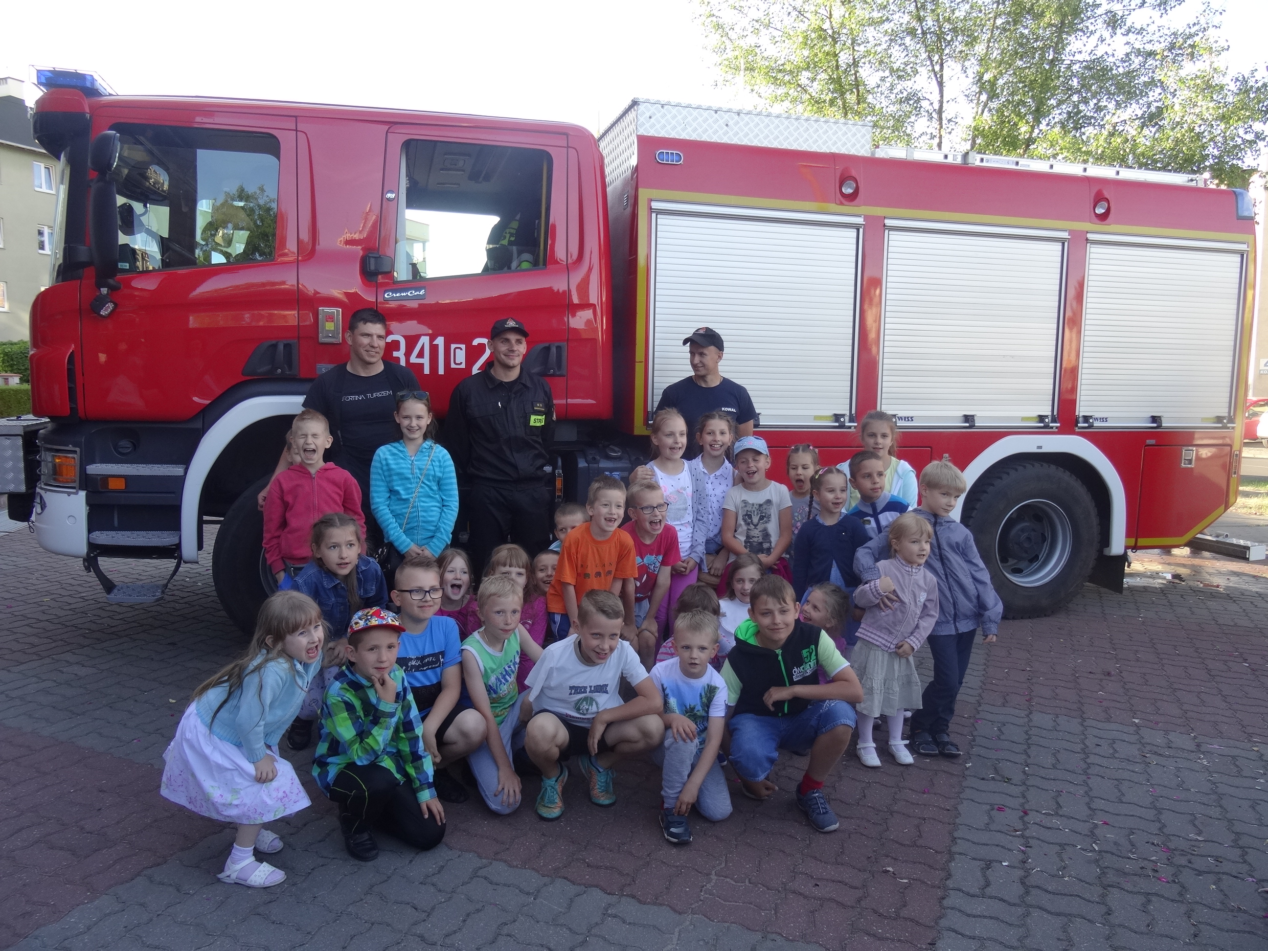 Na festynie pojawili się goście specjalni – strażacy, którzy opowiedzieli o swojej pracy, pokazali sprzęt, z którego korzystają podczas akcji ratowniczych i odpowiadali na pytania młodych ciekawskich. Dzieci miały możliwość wejść do wozu strażackiego, zwiedziły go od wewnątrz oraz zrobiły sobie pamiątkowe zdjęcia z gośćmi.